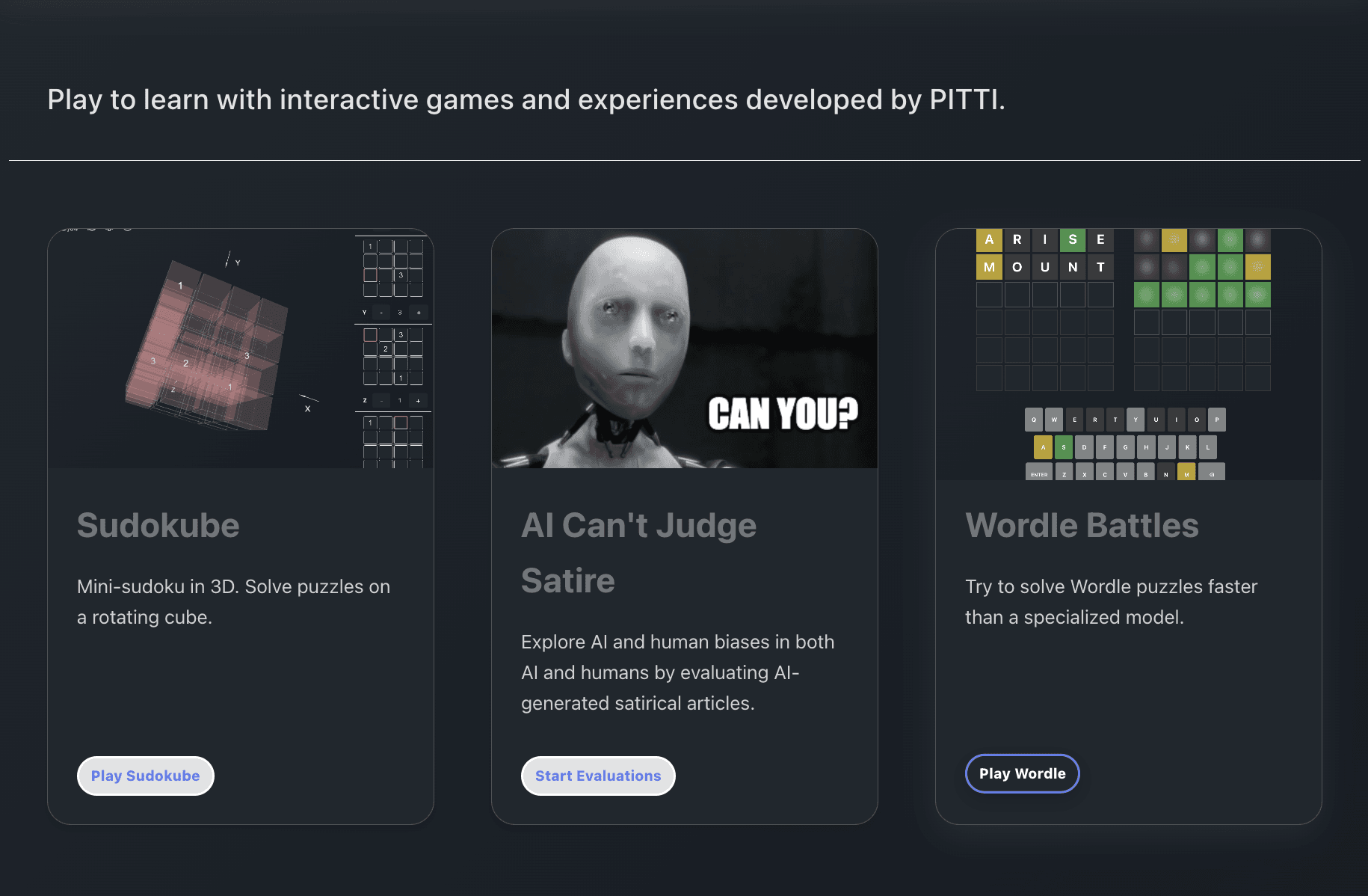 This platform consolidates several mini games inspired by recent projects. Quick overview below:
